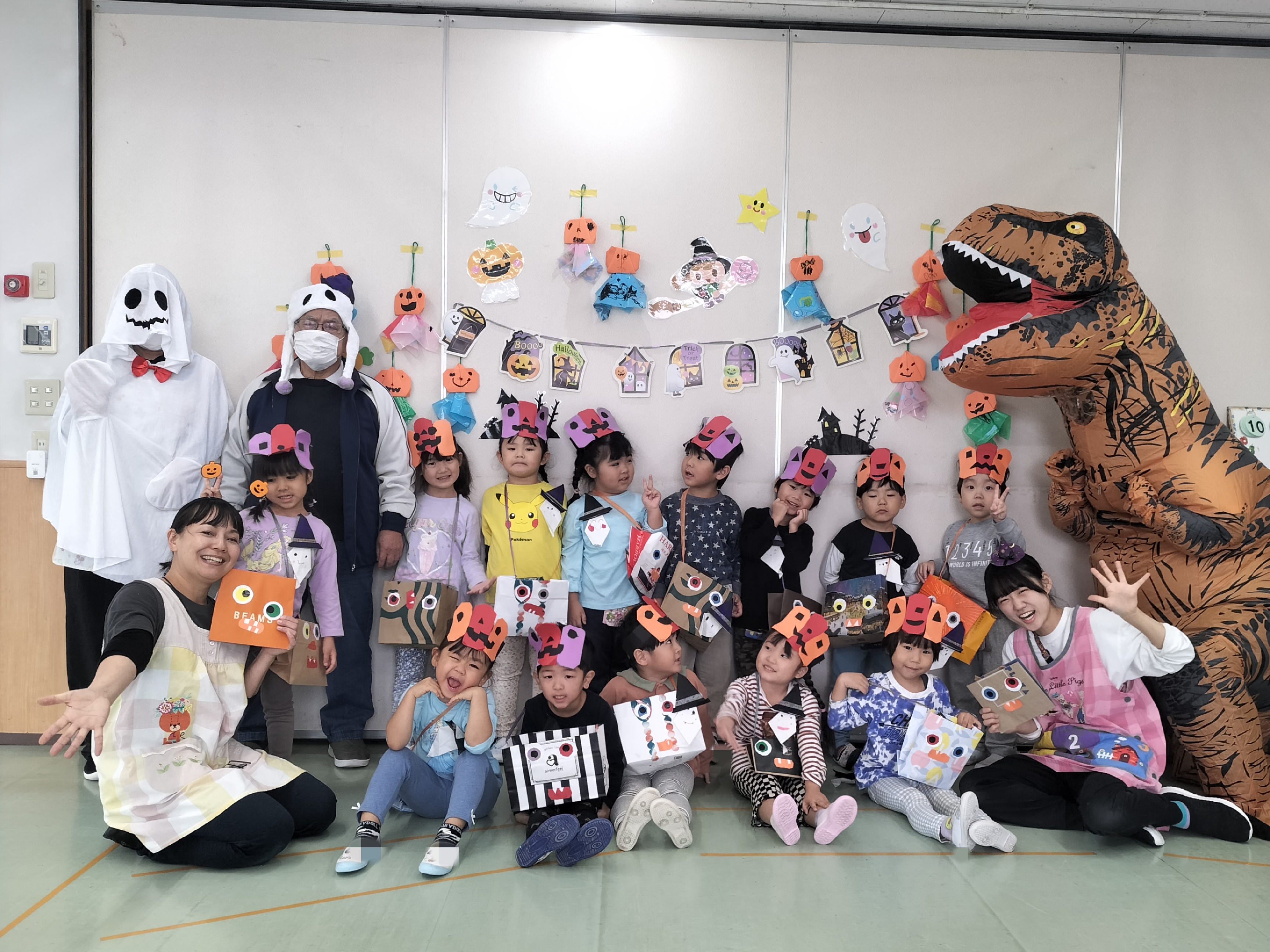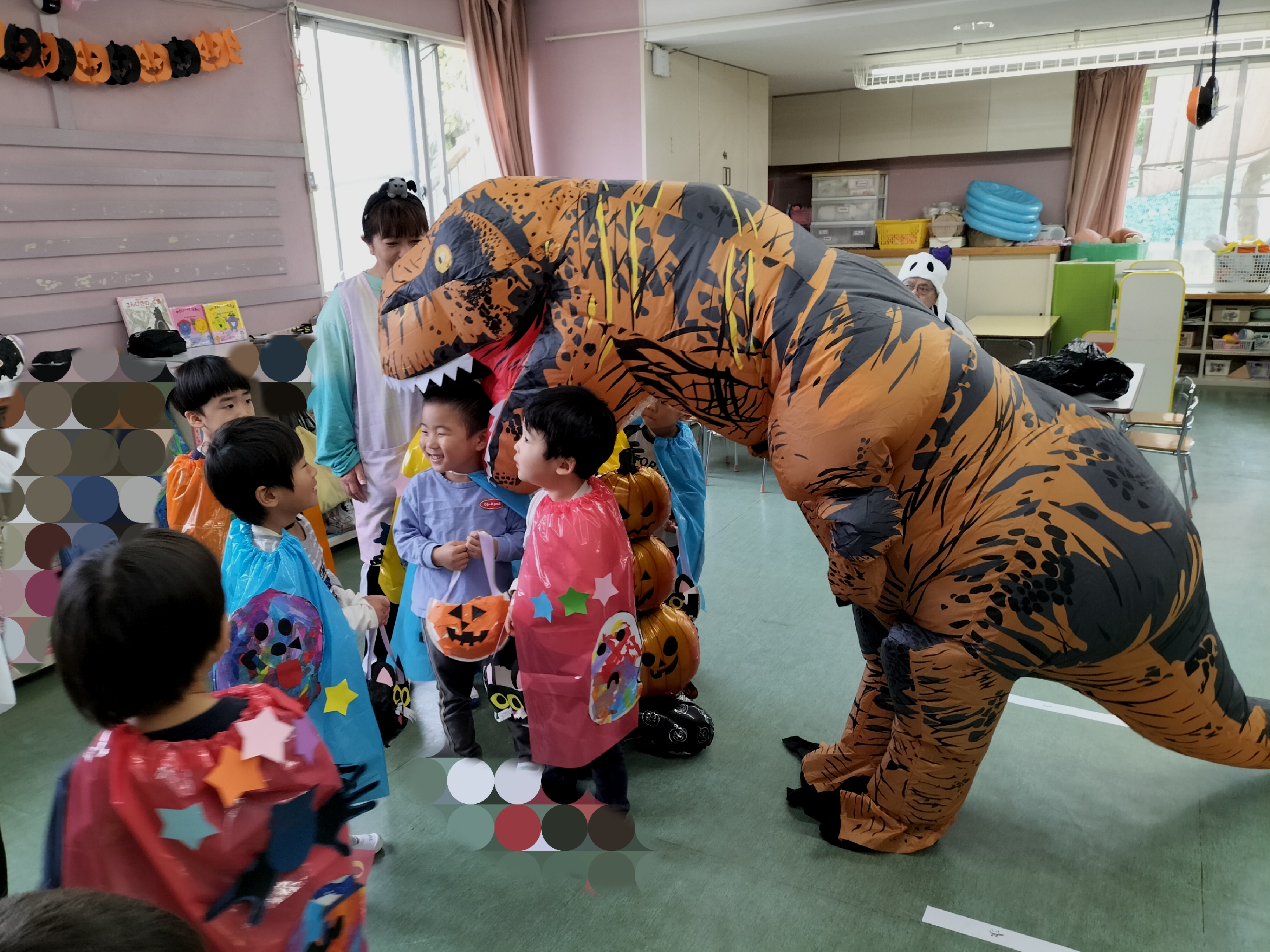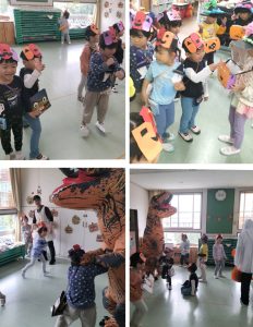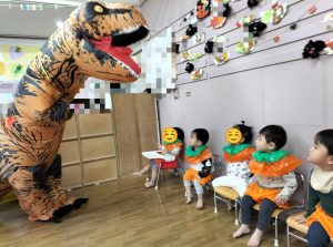 そこに、おばけ👻に変装した園長先生や、大きな恐竜🦖が登場!!