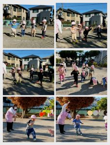 今日は自分たちもできる!と嬉しそうに…保育者が回している縄を跳んだり