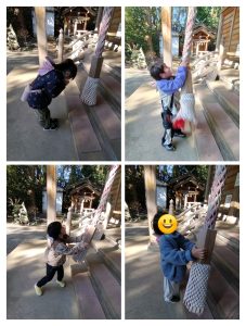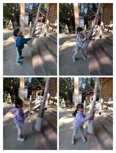 神社の中は、サーッと冷たい風が吹き、葉っぱを揺らしていてとても神聖な感じで“きっと神様見ていてくれてるね”など話をしていました。