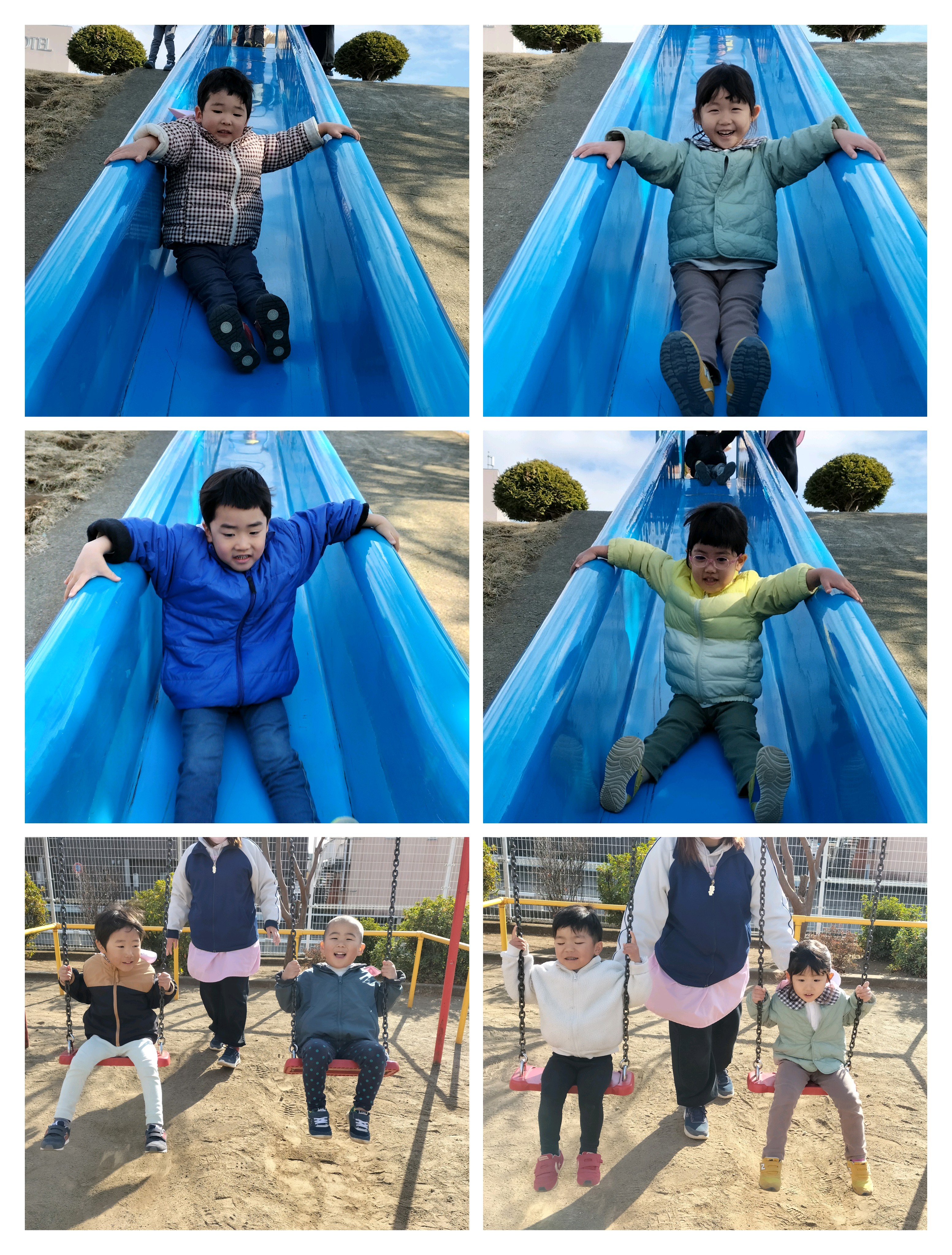 公園では、大きな滑り台や、ブランコにのったり、た〜くさん走って大満足☺