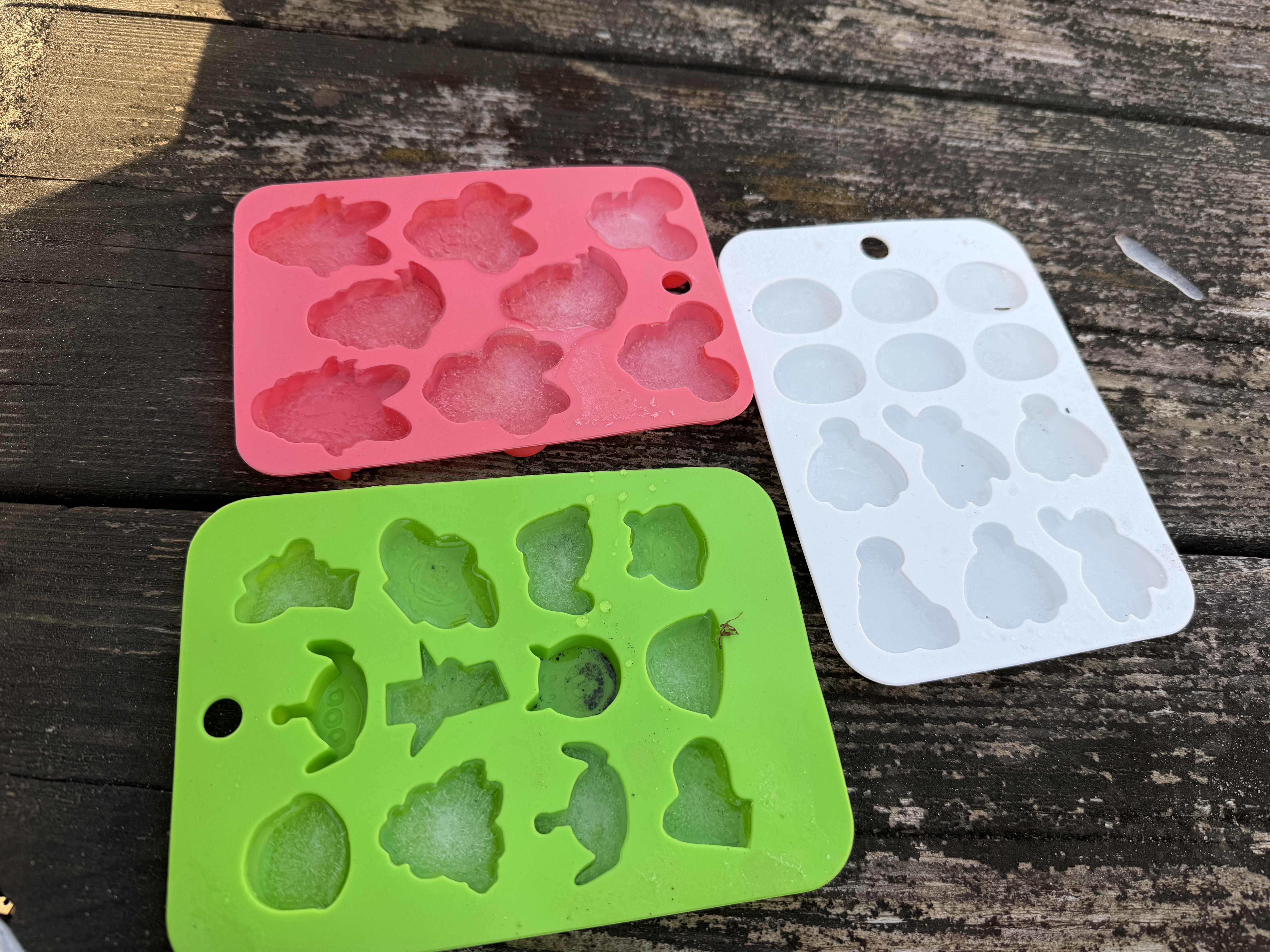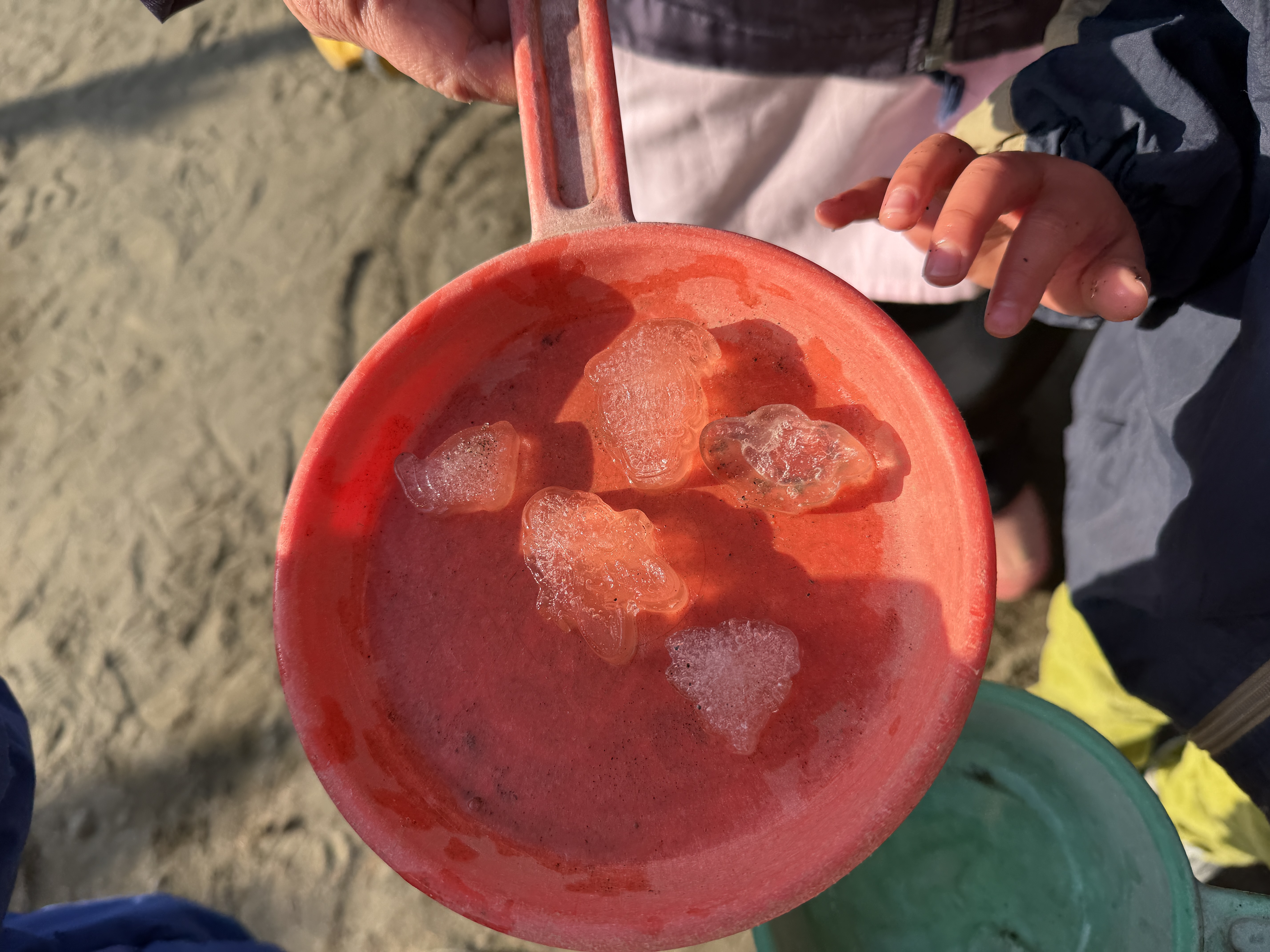 触るとつめた〜い!と感触を楽しんだり、あそびに取り入れたりと、溶けるまで楽しんでいました。