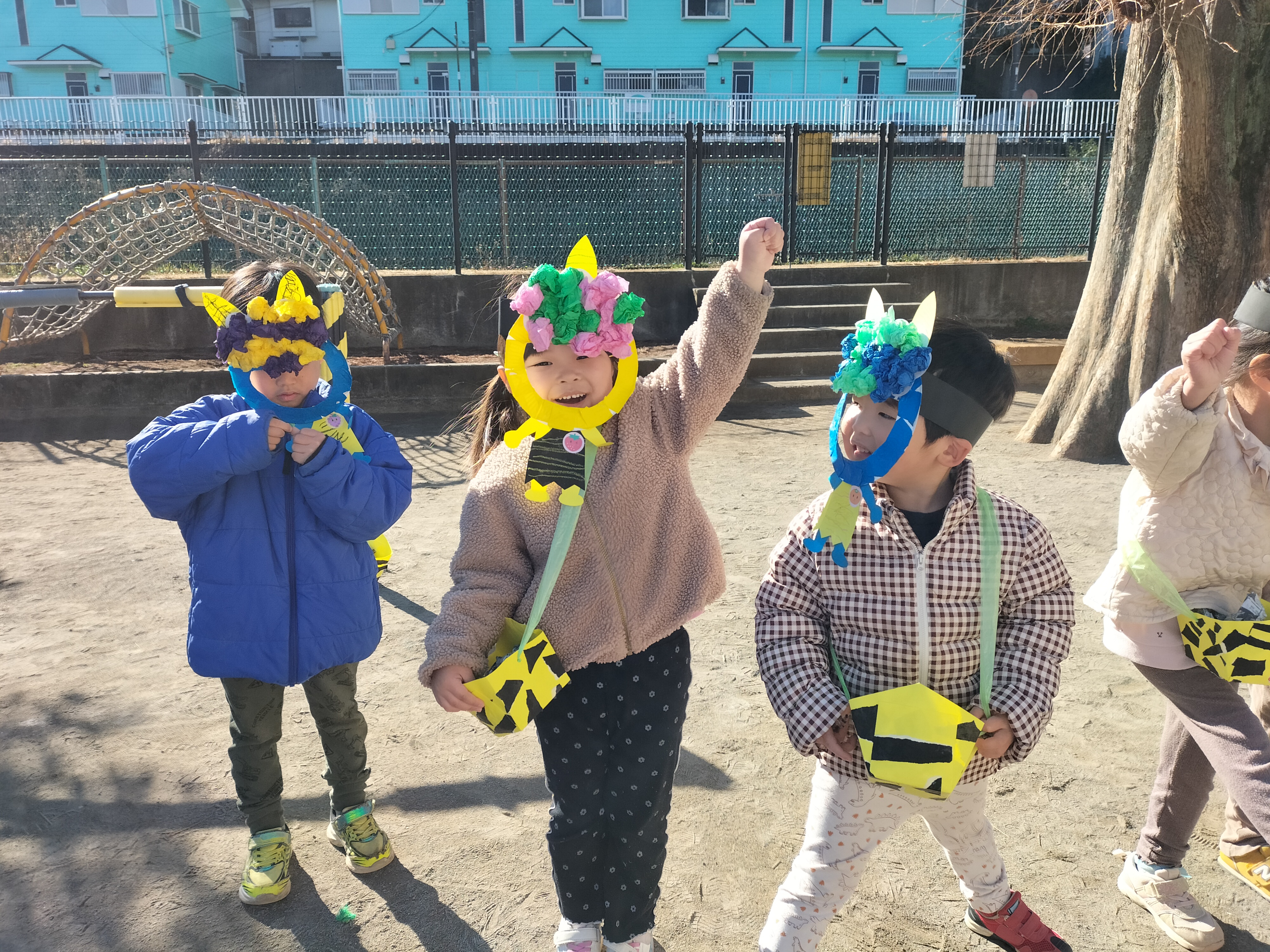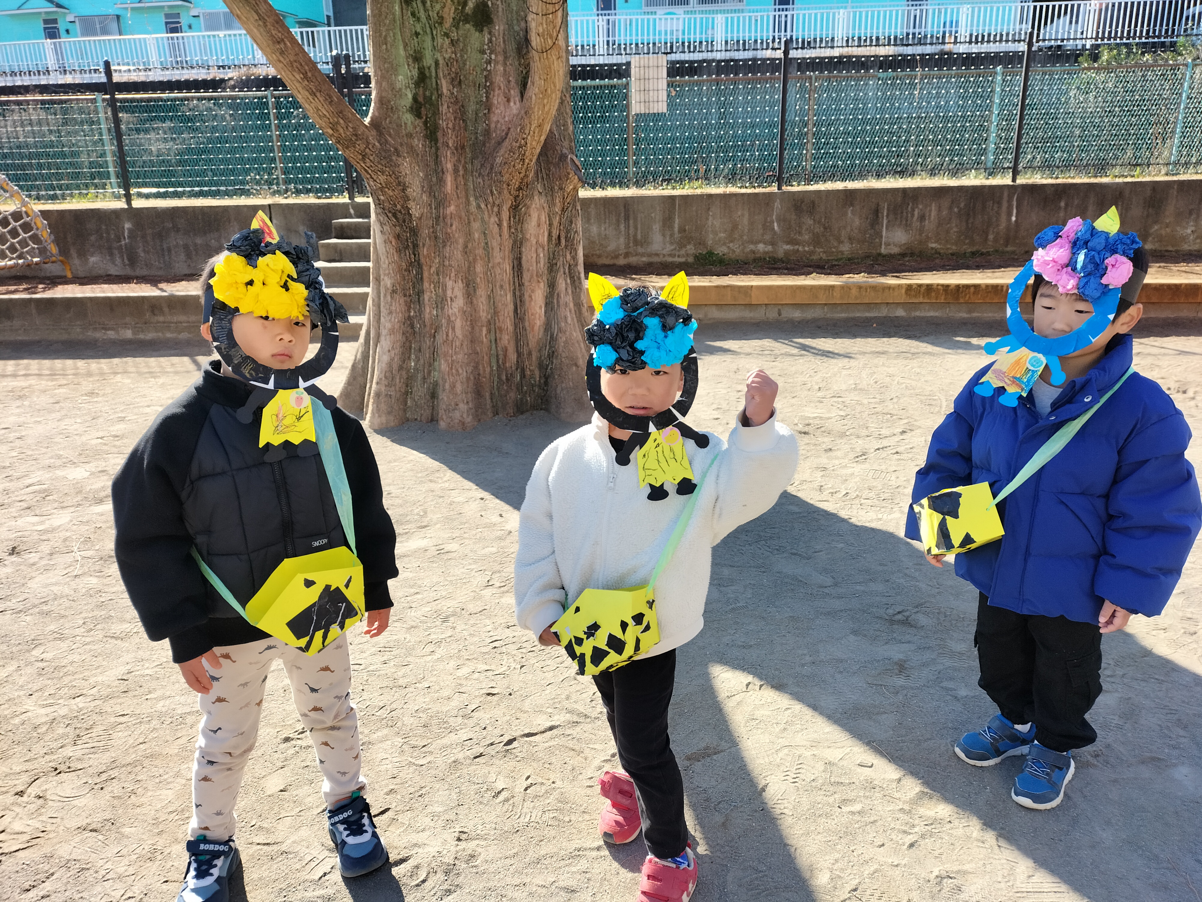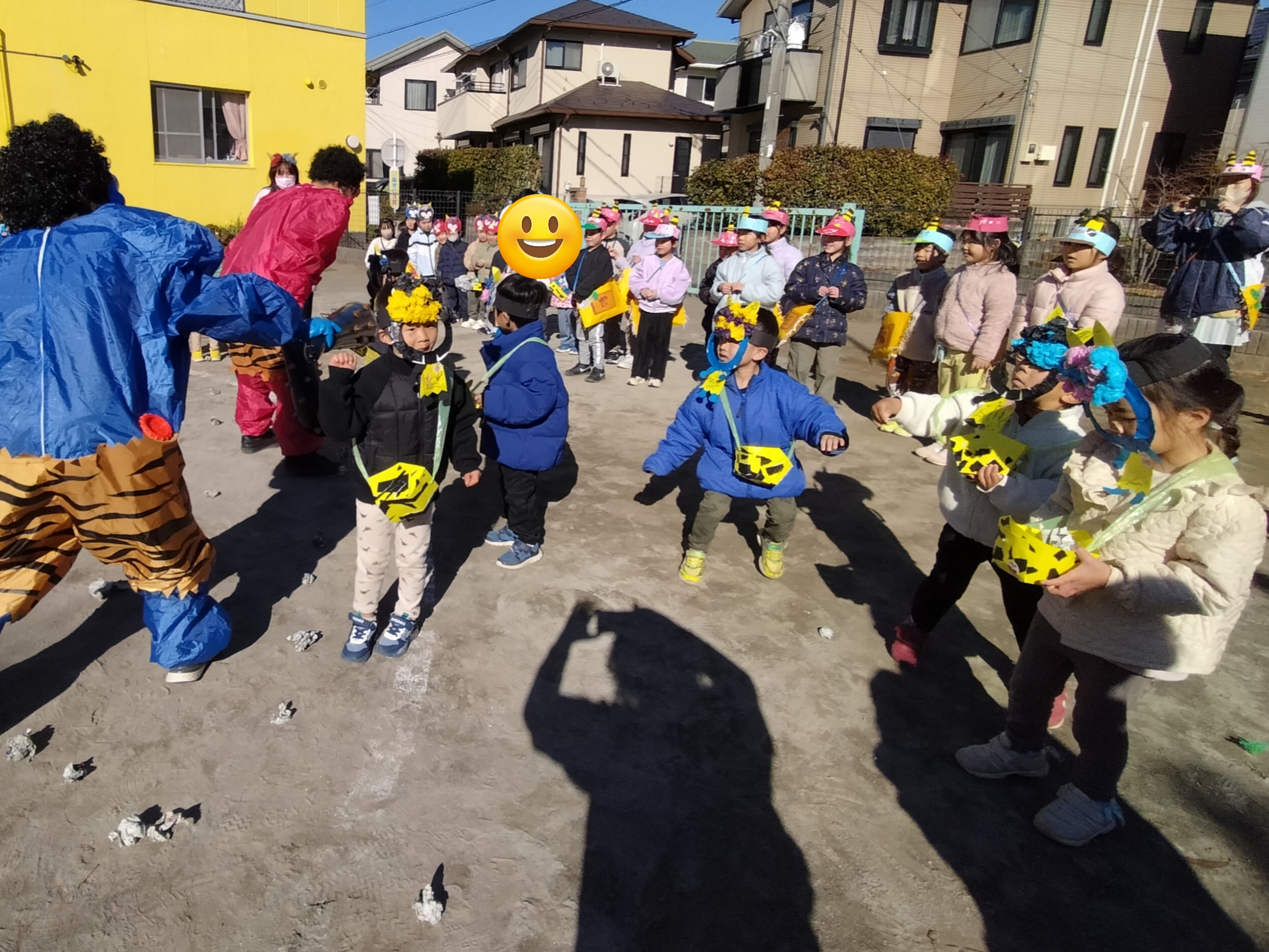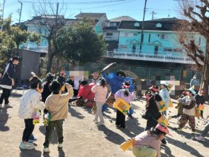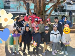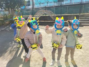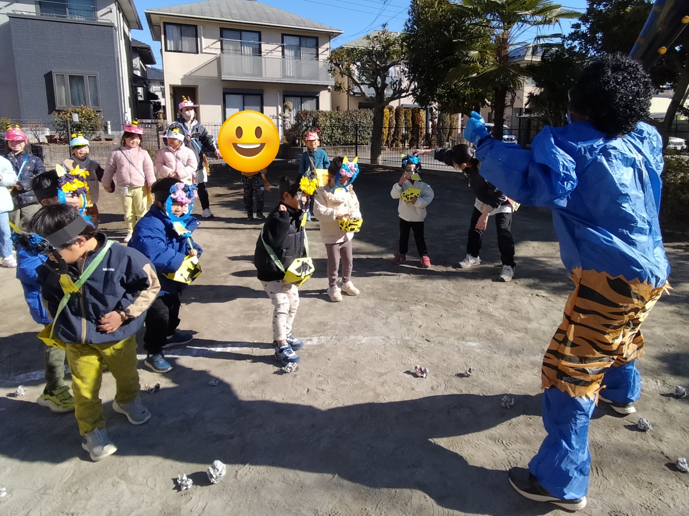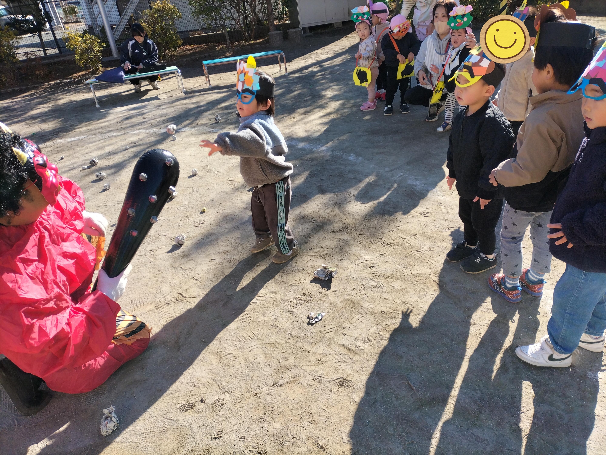 次はほしグループ、つきグループのみんなの番!うさぎ組、ぱんだ組のためにも「鬼を退治するぞ!」とやる気満々な子どもたち💪「鬼は外、福は内!」と鬼をやっつけることができました✨
