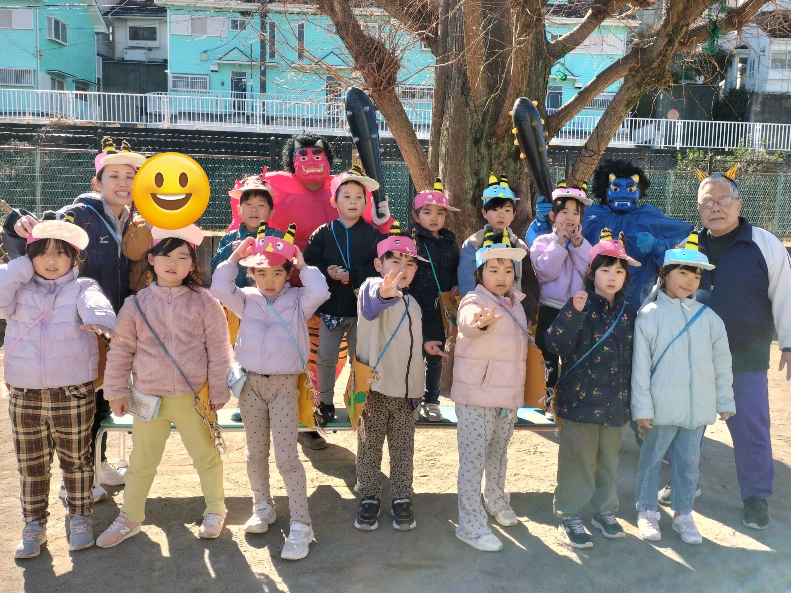 鬼を倒し、仲良くなった後、クイズをして鬼さんと記念撮影📸