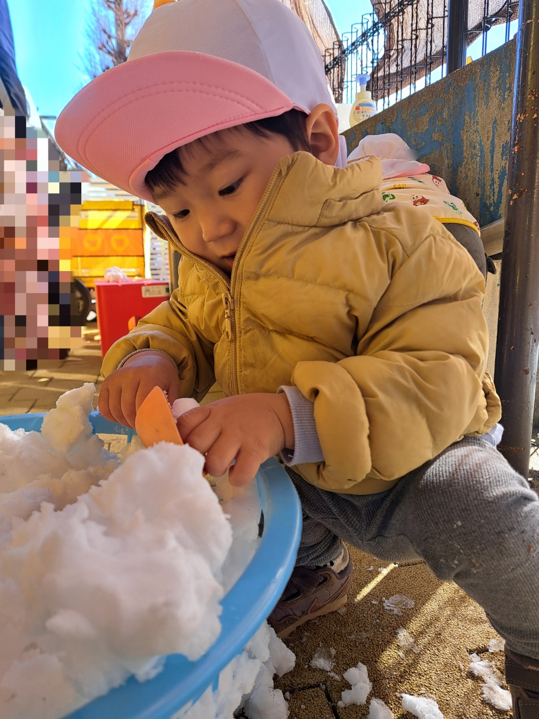 雪の冷たい感触を楽しむ子どもたちでした😊