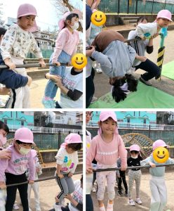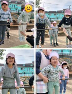 怖がる子は保育者が支えながら行い、自ら挑戦する子もいました。