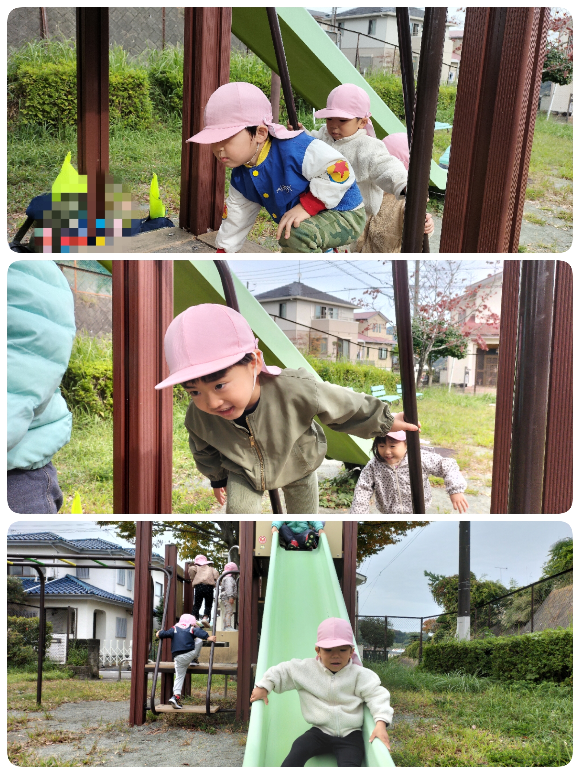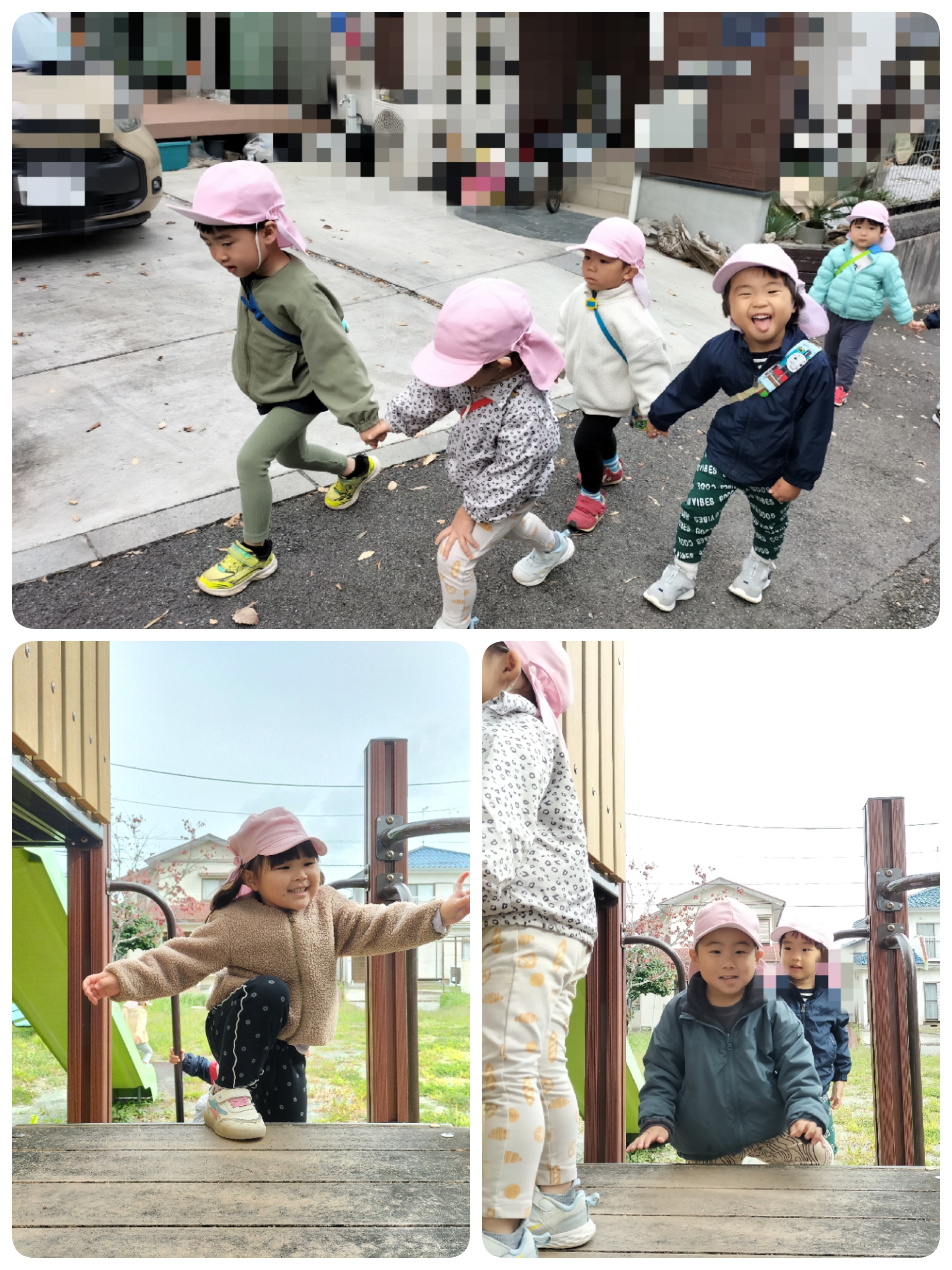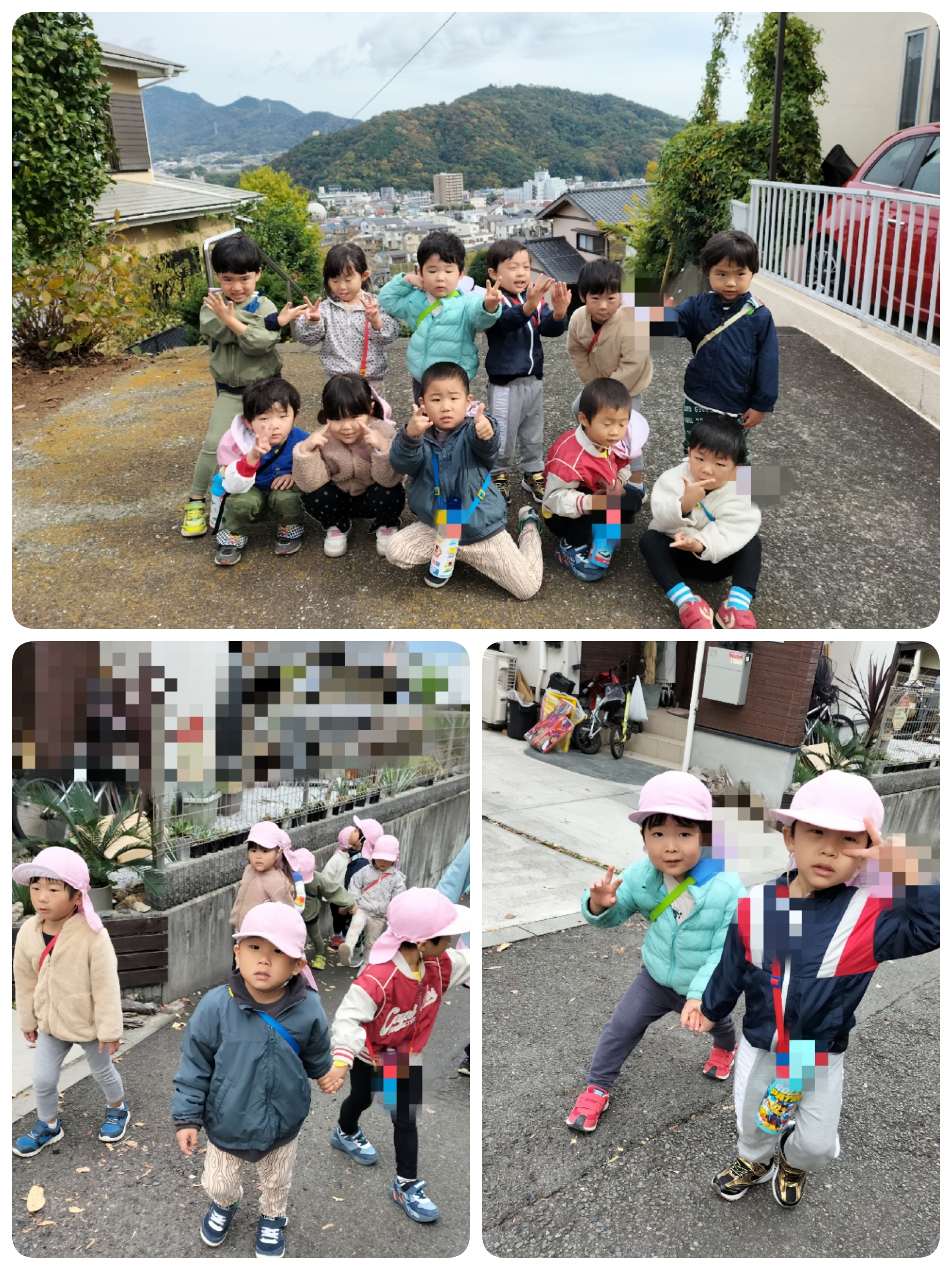 出発してから「楽しいね〜😊」と友だち同士で話し、ウキウキしている子どもたち。柿を見つけたり、トラック・バスが通ると大興奮でした!!
