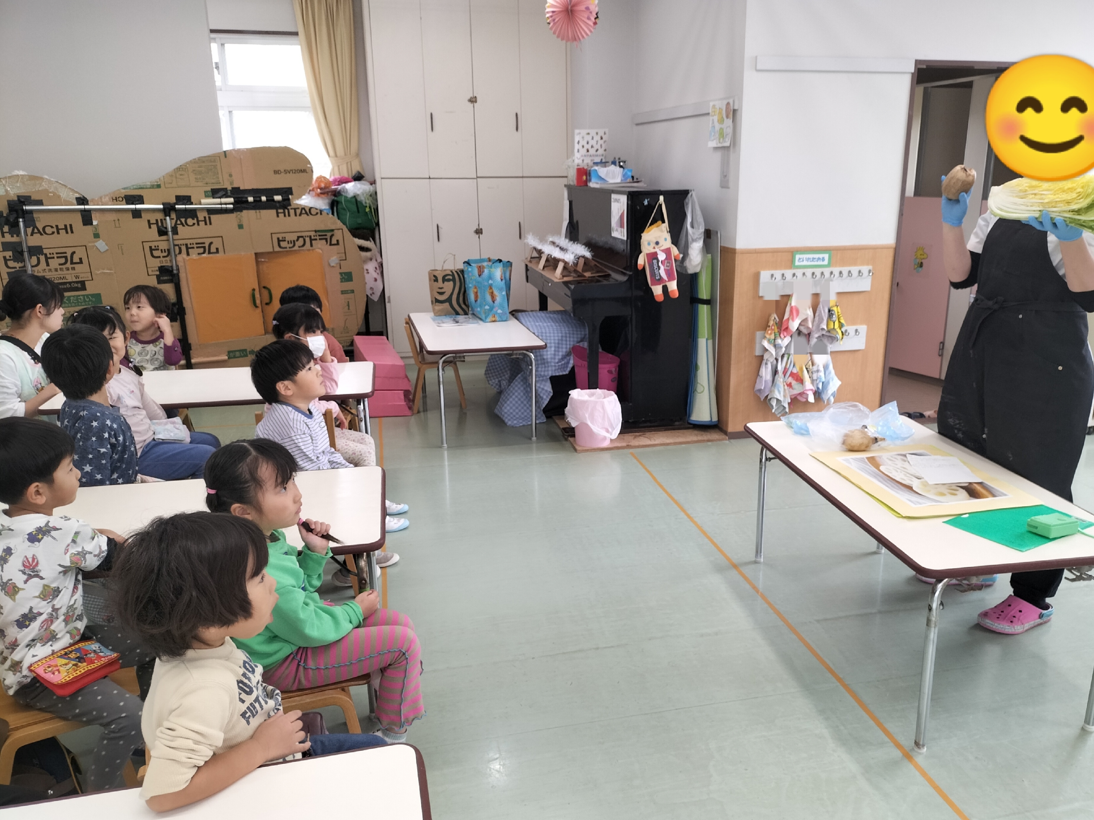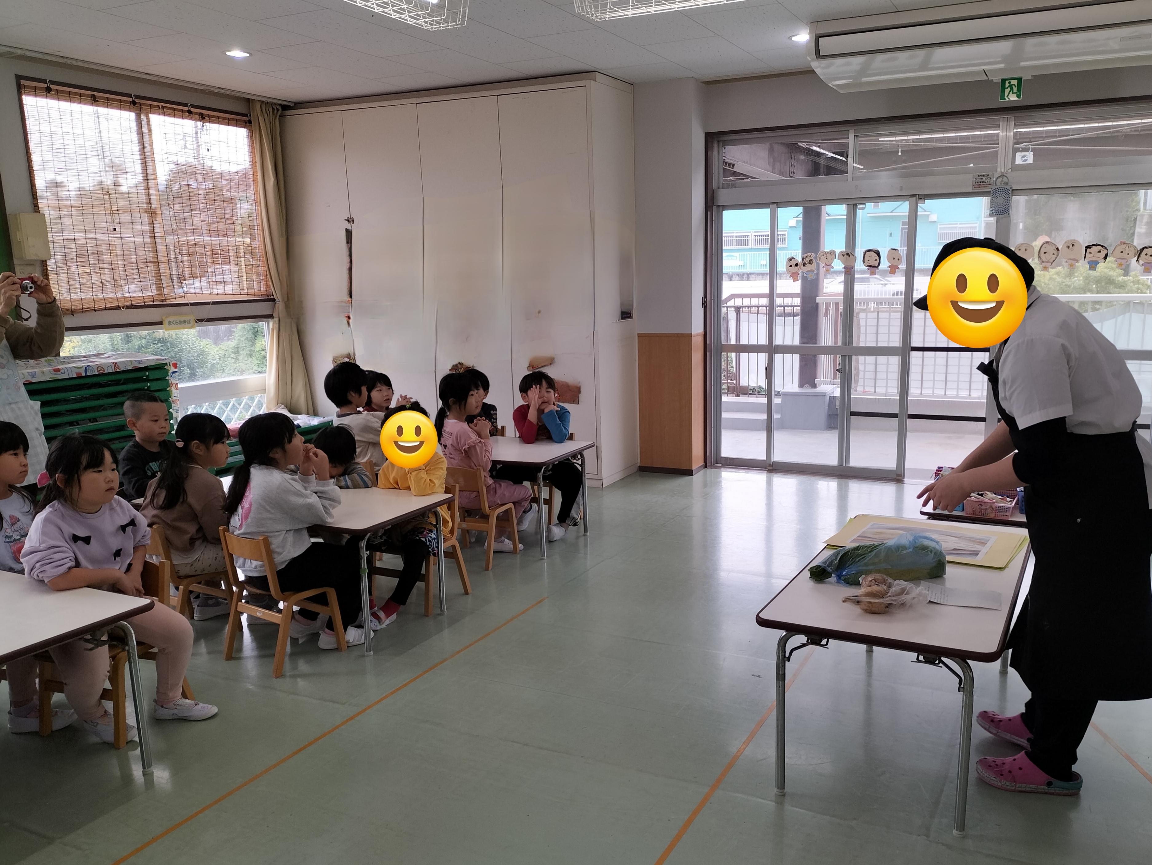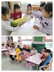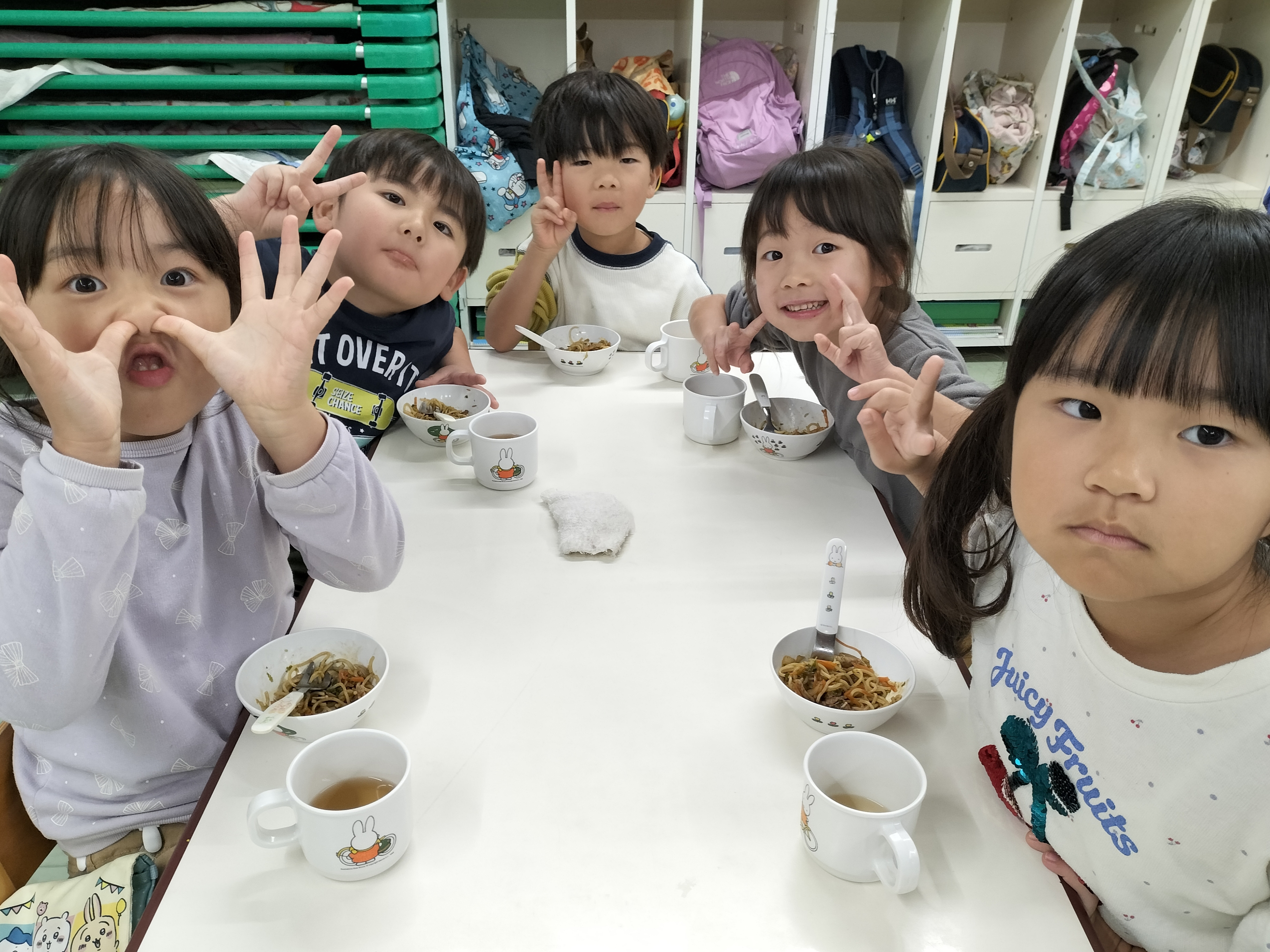出発してから「楽しいね〜😊」と友だち同士で話し、ウキウキしている子どもたち。柿を見つけたり、トラック・バスが通ると大興奮でした!!