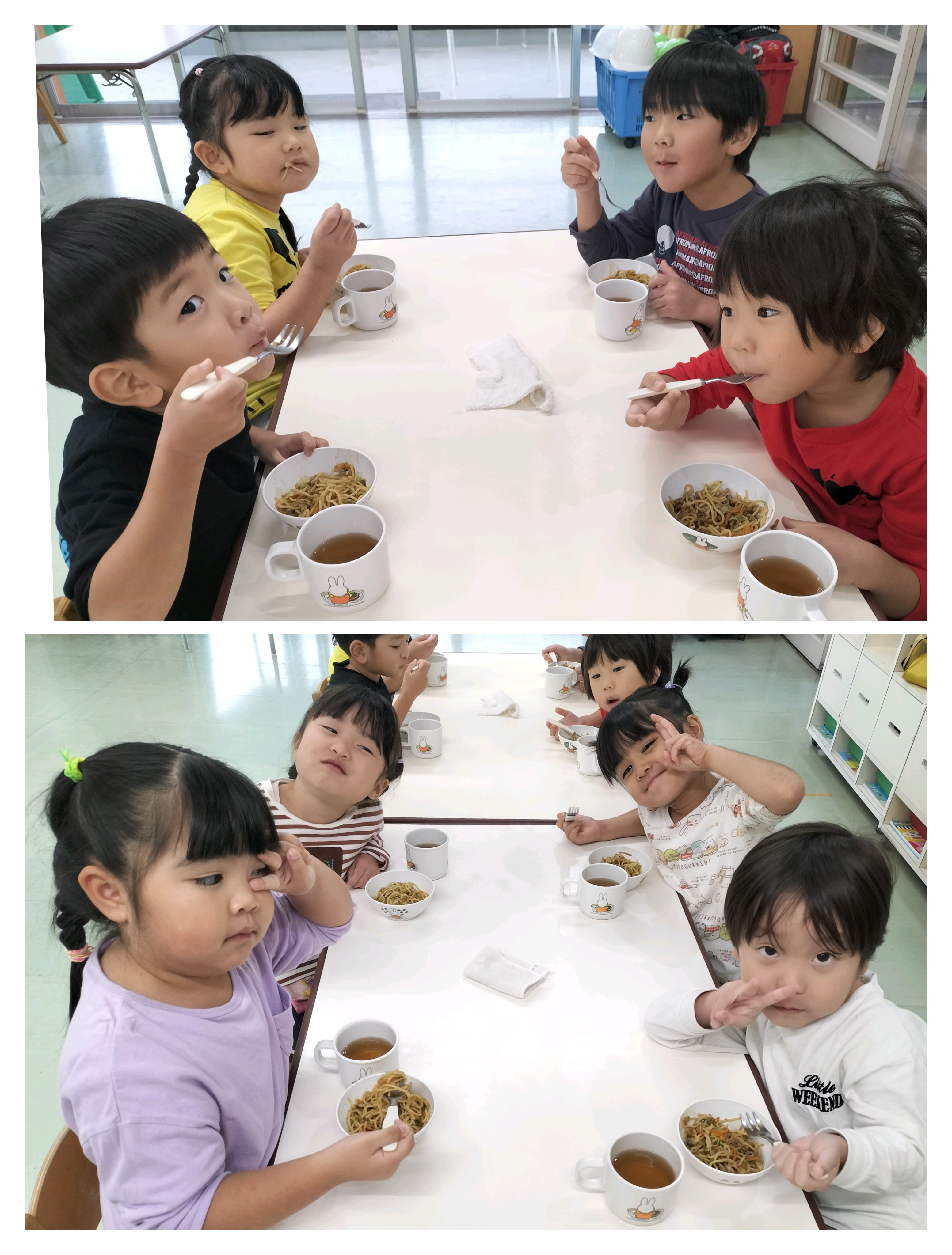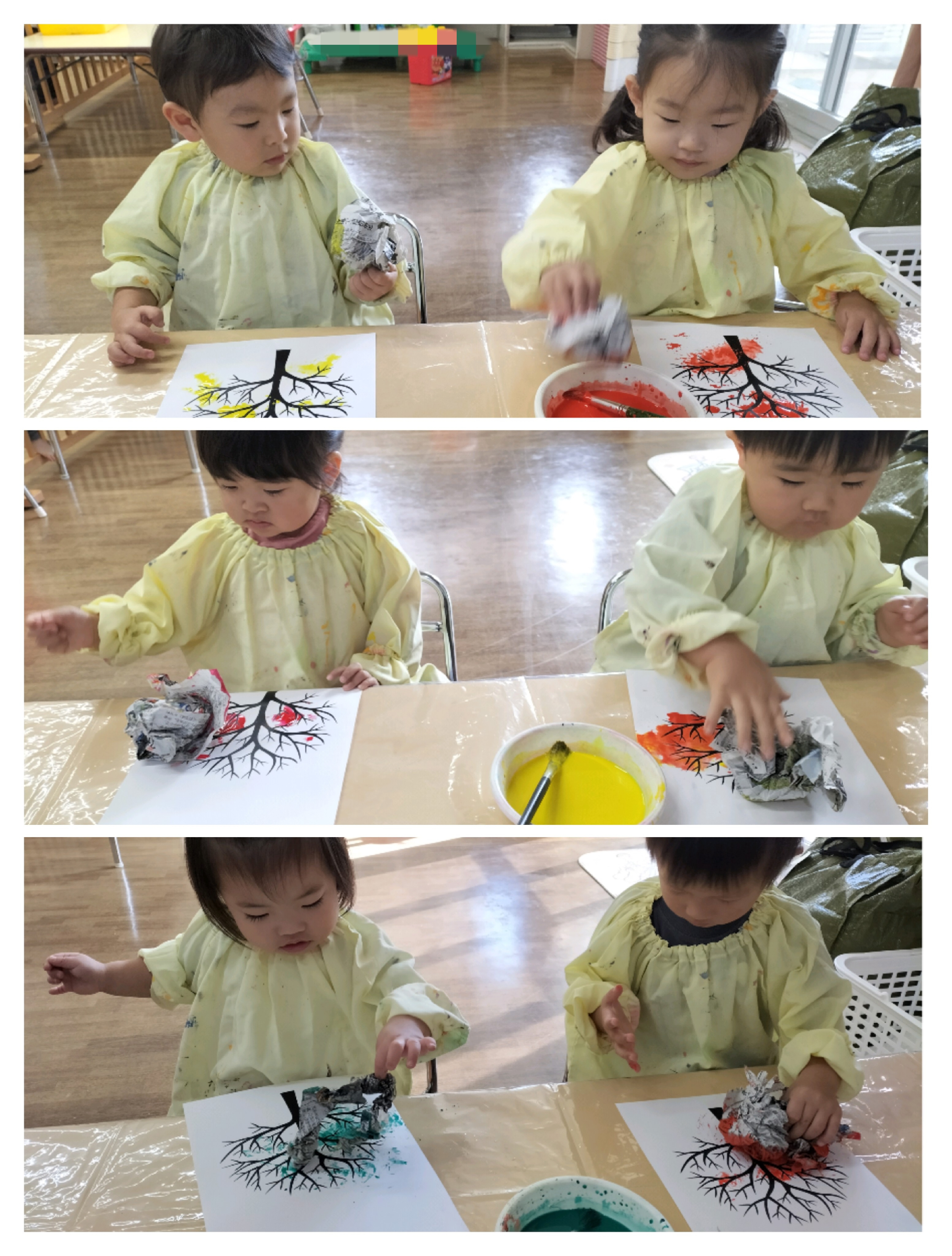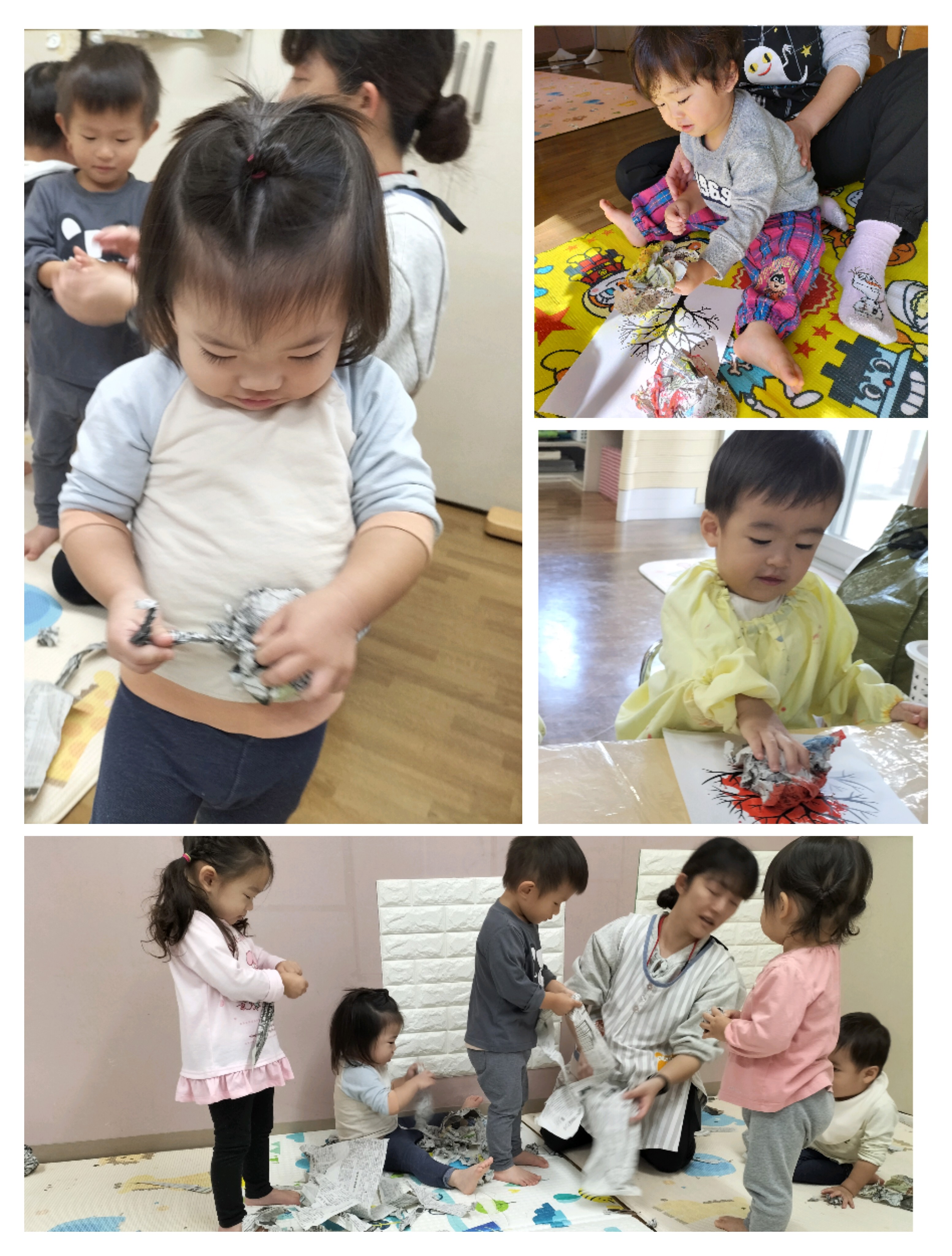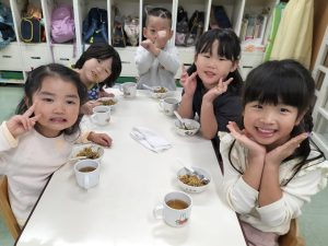 室町公園に到着。イチョウの葉が落ち、黄色いじゅうたんになっていて、葉を袋に集めたり、ひとまとめにしてイチョウの雨を降らせたり、友だちや保育者とかけあって楽しみました✨