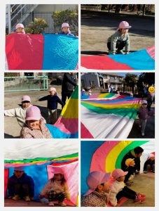 はじめて触った、パラバルーン!とても楽しかったようで、またやろうね!と次への期待が膨らんでいました☺