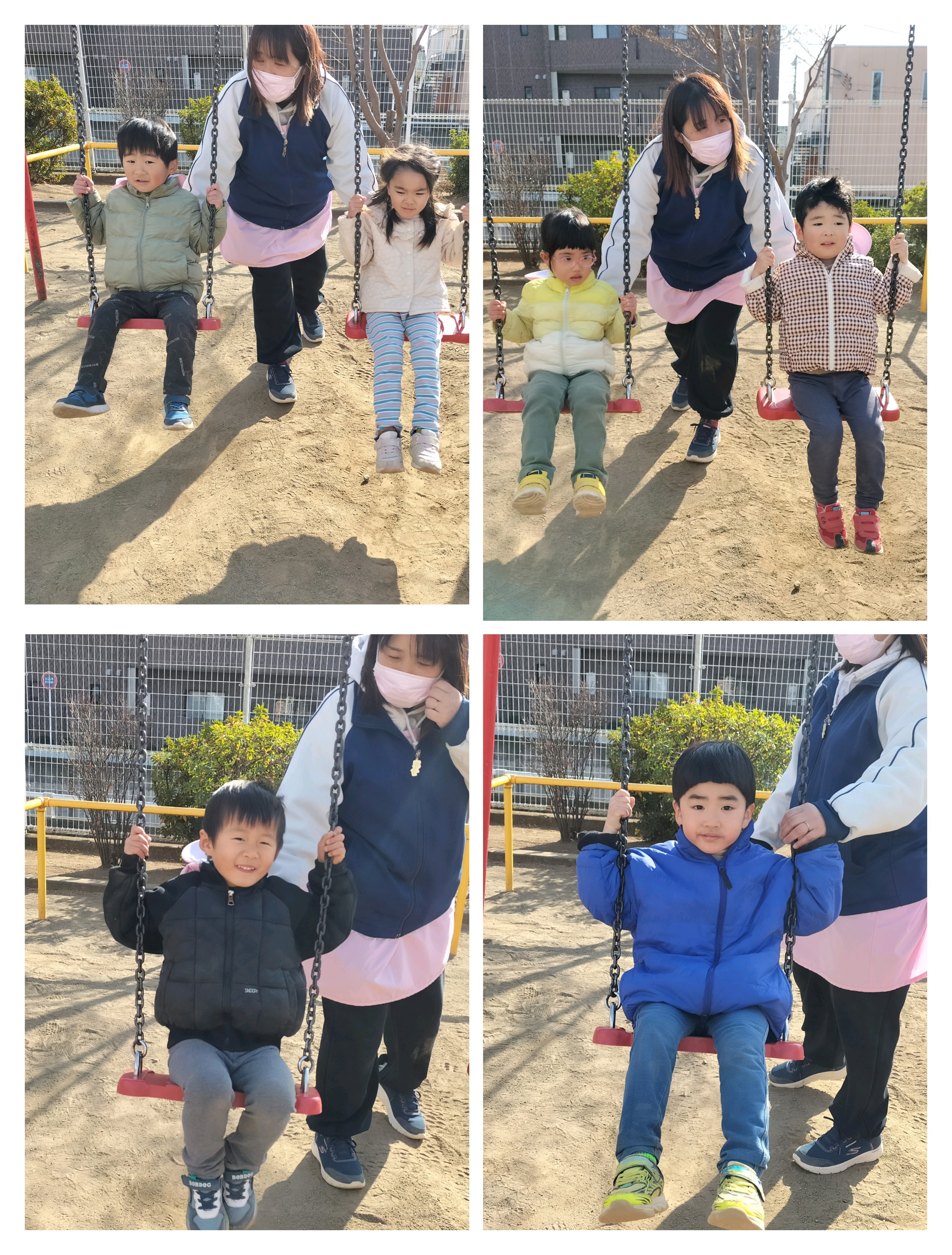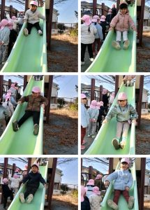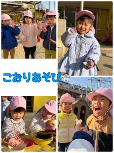 園庭で遊びました。いつものように、シャベルを持って、バケツに砂を入れていた子どもたち。保育士が中に入っている砂をシャベルで「グルグル」とかき混ぜると、子どもたちも真似をしてグルグルと混ぜ始めました!新しい遊びを発見しました!